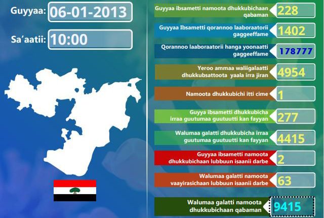 Erga vaayrasichi gara Ityoophiyaa seenee hanga ammaatti naannoo Oromiyaatti qorannoon laabraatoorii namoota 178777 gaggeeffameera.
