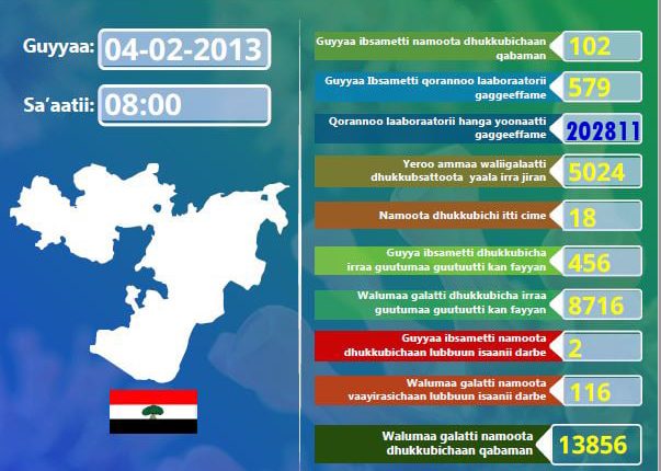 Erga vaayrasichi gara Ityoophiyaa seenee hanga ammaatti naannoo Oromiyaatti qorannoon laabraatoorii namoota 202811 gaggeeffameera.