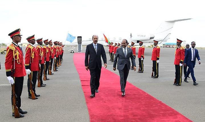 Pireezidaanti Hasan Mahaammad wayita Asmaraa gahanitti Pireezidaantii Ertiraa Isaayyaas Afwarqiin simatamaniiru.