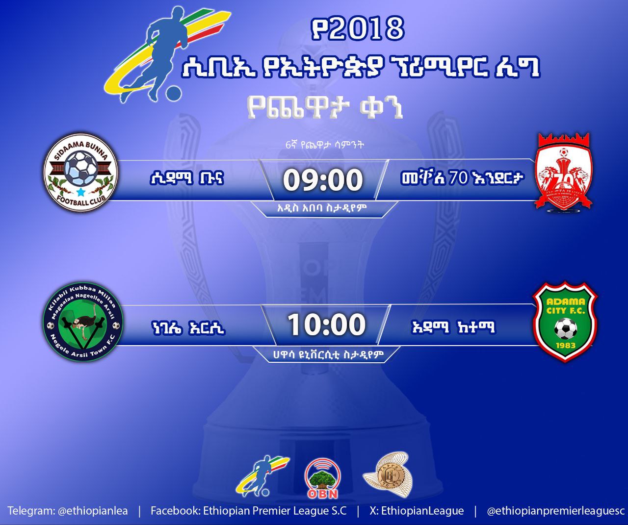 Finfinnee, Sadaasa 11, 2018(FMC) – Sagantaa Piriimiyar Liigii CBE Itiyoophiyaa torbee 6ffaan har’a taphoonni lama ni taphatamu.