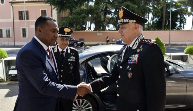 Jilli Komishinara Jeneraalaa Koomishinii Poolisii Federaalaa Dammallaasha Gabiremikaa’eeliin durfamu, Roomitti Ittigaafatamaa Dhaabbata Poolisii Xaaliyaanii Komaandar Jeneraal Tee’oo Luuzii waliin mar’ataniiru.