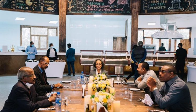 Finfinnee, Eebila 25, 2012 (FBC) – Preezdaantiin FDRI Saahilawarq Zawdee fi Muummee Ministiraa FDRI Dooktar Abiy Ahimad Preezdaantii Ertiraa Isaayyas Afawarqii waliin wal arganiiru.