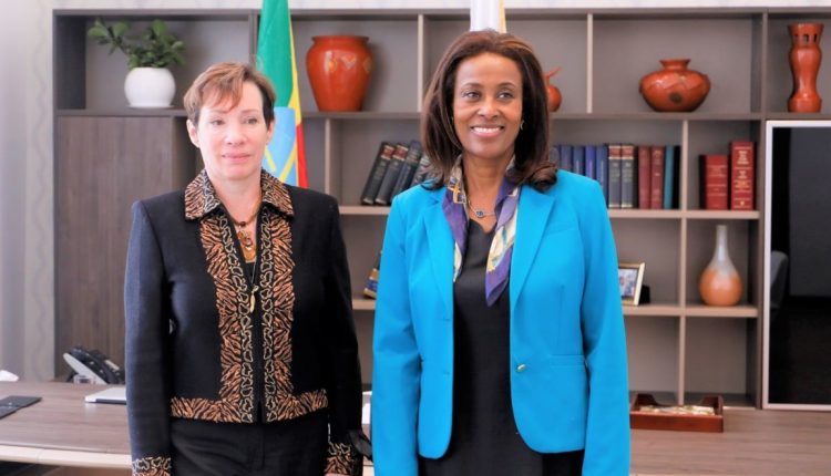 Finfinnee, Eebila 4, 2014 (FBC) – Preezdaantiin Mana Murtii Waliigalaa Federaalaa Ma’aazaa Ashannaafiin hojii raawwachiistuu Imbaasii Ameerikaa Ambaasaaddar Treesii An Jaakoobsan waliin dhimmoota deeggarsaarratti mari’ataniiru.