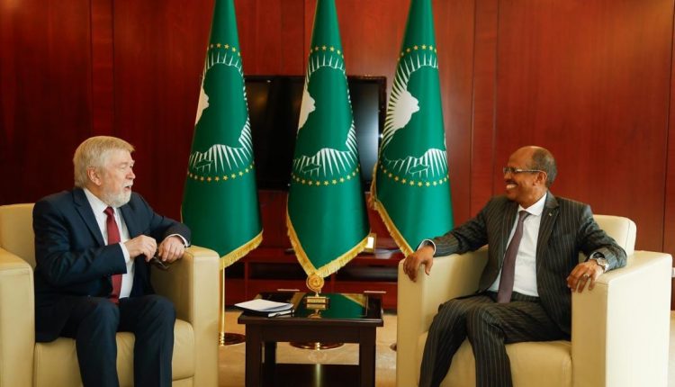 Itiyoophiyaatti Ambaasaaddarri Raashiyaa Ivgeenii Tarkihiin Dura Taa’aa Komishinii Gamtaa Afrikaa Mahaammud Alii Yusuuf waliin haala waloon hojjechuu danda’anirratti mari’ataniiru.