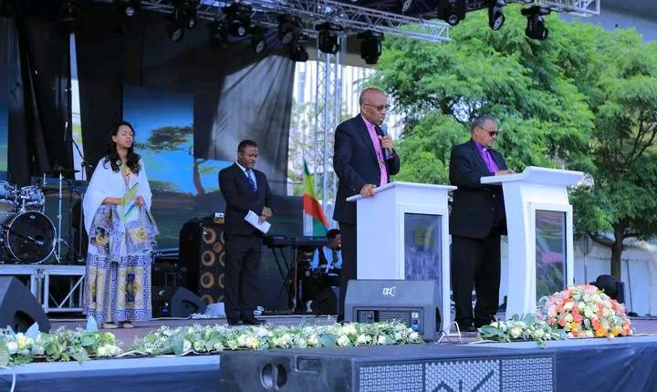 Tokkummaa fi nageenya biyyaaf sagantaa kadhannaa gaggeeffamaa jirurratti gaggeessitoonni, Abbootiin Amantaalee, Faarfattoonni Waldaalee Amantoota Wangeelaa miseensota Kaawunsilichaa fi keessummoonni biroon argamaniiru.