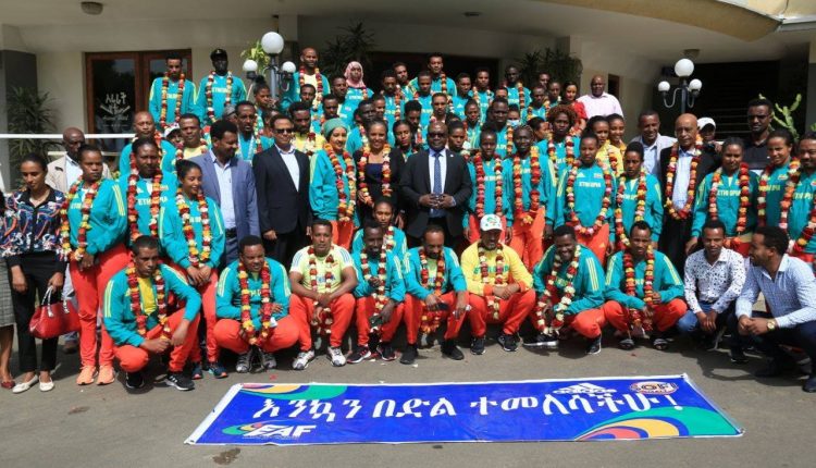 Shaampiyoonaa kanarratti garee jilaa atileetiksiin hirmaachaa ture wayita Finfinnee seenu, De’eetaa Ministiraa Ministeera Aadaa fi Ispoortii Ambaasaaddar Masfiin Charinnatiin dabalatee qaamoleen hoji raawwachiiftota atileetiksii Ityoophiyaatiin simatamaniiru.