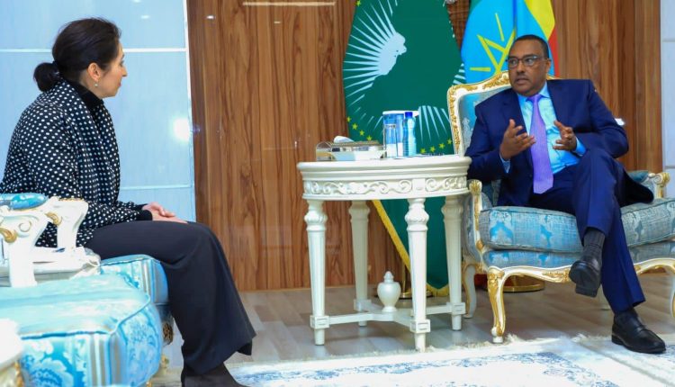 Finfinnee, Adoolessa 15, 2014(FBC)- Ittaanaan Muummee Ministitaa fi Ministirri Ministeera Dhimma Alaa Obbo Dammaqaa Makonnin Ityoophiyaatti Ambaasaaddara Siwiizarlaand Taamaaraa Moonaa waliin mari’atan.
