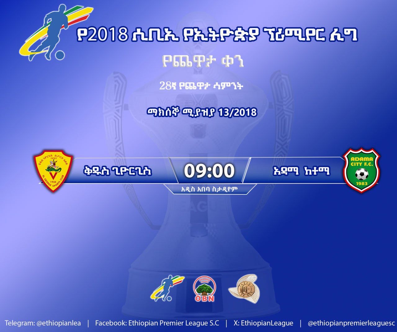 Finfinnee, Ebla 13, 2018 (FMC) – Tapha CBE Piriimer Liigii Itiyoophiyaa torbee 28ffaan Qiddus Giyoorgis Magaalaa Adaamaa waliin Istaadiyeemii Finfinneetti ni taphatu