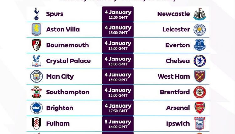 Galgala sa’aatii 12:00 eegalee taphoonni 5 kan taphataman yoo ta’uu, Boornimaawuuz – Eevartan, Astoon Viilaan – Leester, Kiristaal Paalaas – Cheelsii, Maanchiister Siitiin – Weest Haam, Saawuuz hampitan – Bireentifoord waliin yoo falmatan, halkan sa’aatii 2:30 irraa jalqabee falmiin Biraayitan Arsenaal waliin taasisu ni eegama.