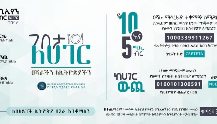 Haaluma kanaan dhaabbileen Birrii miiliyoona 5 fi miiliyoona 10 gumaachan nagahee maallaqa baankiitti ittiin galchan karaa teessoo dineforethiopia@pmo.gov.et akka ergan gaafatameera.