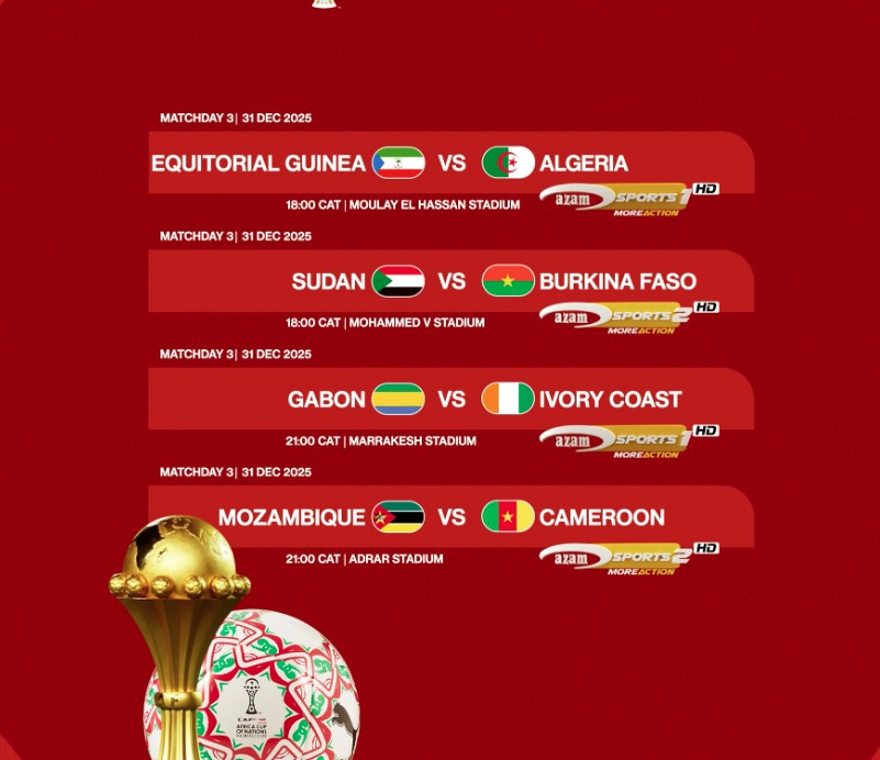 Har’a galgala sa’aatii 1:00 eegalee Ikkuwaatooriyaal Giiniin Aljeeriyaa, Sudaan ammoo Burkiinaa Faasoo waliin taphatu.