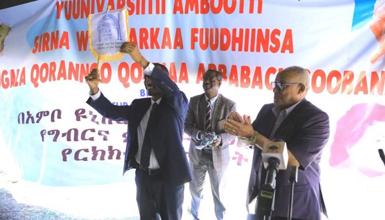 Daayrektarri Waldichaa Obbo Isheetuu Araddaa bakka hoggantoonni federaalaa, naannoo fi godina jiranitti Preezdaantii Yuunivarsitii Amboo Dooktar Taaddasaa Qana’aaf dabarsanii kennaniiru.