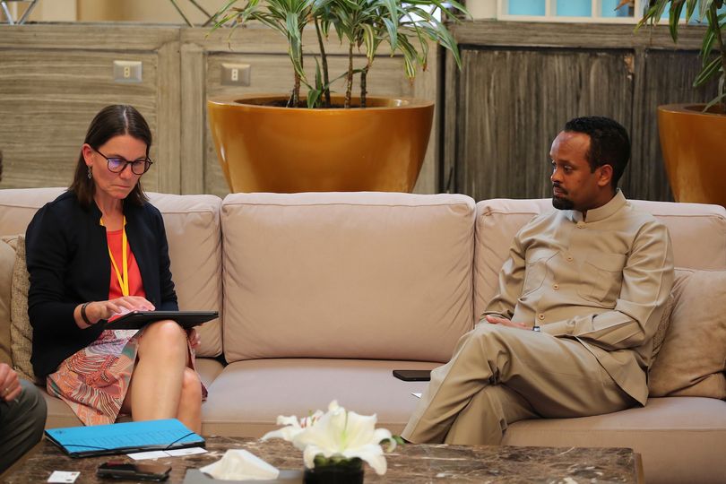 التقى وزير المالية في إثيوبيا أحمد شيدي، بالمديرة العامة لشؤون أفريقيا في الوزارة الاتحادية للتعاون الاقتصادي والتنمية في ألمانيا، بيرجيت بيكل، على هامش الاجتماع السنوي لمجلس محافظي البنك الأفريقي للتنمية في مدينة شرم الشيخ بمصر.