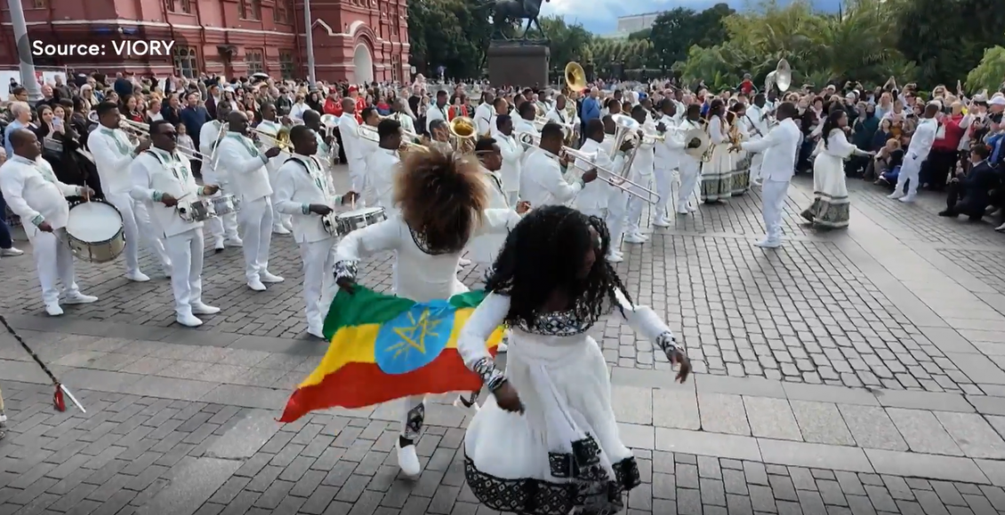 قدّمت أوركسترا قوة الدفاع الوطني الإثيوبية عرضاً موسيقياً في ساحة مانيجنايا بموسكو يوم الاثنين، ضمن فعاليات مهرجان برج سباسكايا الدولي للموسيقى العسكرية.