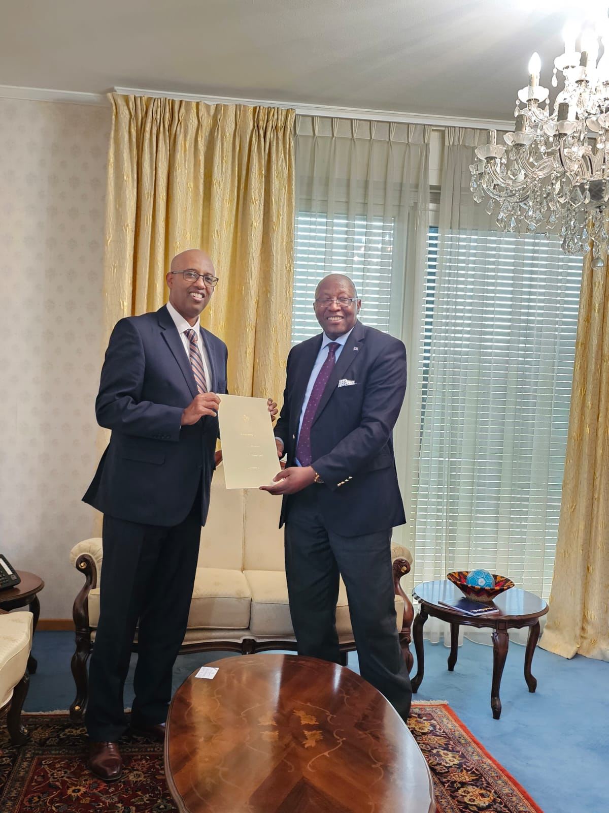 خلال عملية التسليم، قدم السفير فوق العادة والمفوض ، الممثل الدائم لإثيوبيا لدى مكتب الأمم المتحدة في جنيف والمنظمات الدولية الأخرى في سويسرا ، صغاب كبيو، شكره للسفير فويلي دوميساني دالميني، الممثل الدائم لإسواتيني، على التسليم الرسمي للمكتب الأفريقي الذي يتخذ من جنيف مقراً له.