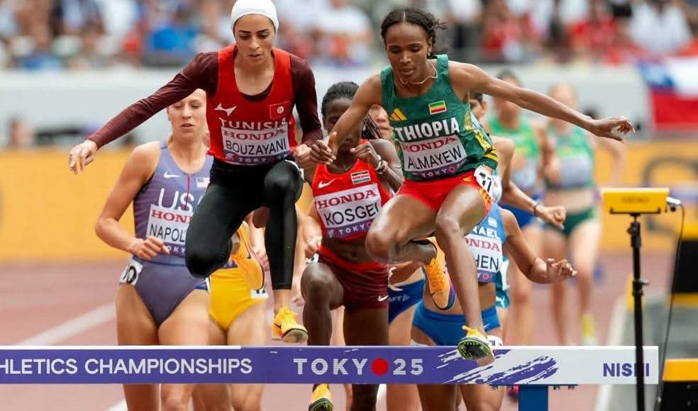 فازت العداءة الإثيوبية سيمبو أليمايهو بالميدالية البرونزية في سباق 3000 متر موانع للسيدات ضمن بطولة العالم العشرين لألعاب القوى، المقامة حاليًا في طوكيو، اليابان.
