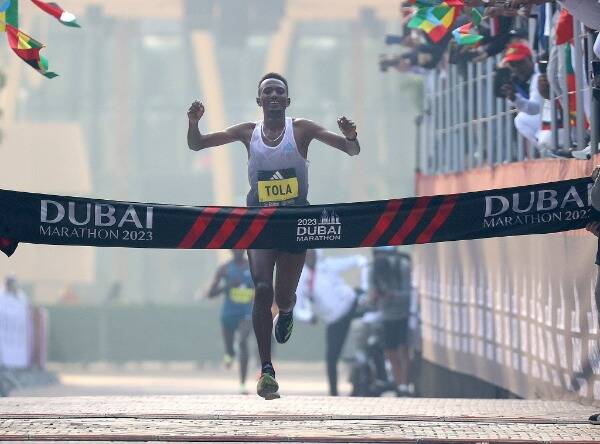 سيطر العداؤون الإثيوبيون بصورة كاملة على المراكز العشرة الأولى في ماراثون دبي كما كانت لعائلة بطل العالم الإثيوبي تامرات تولا الحصة الاكبر .