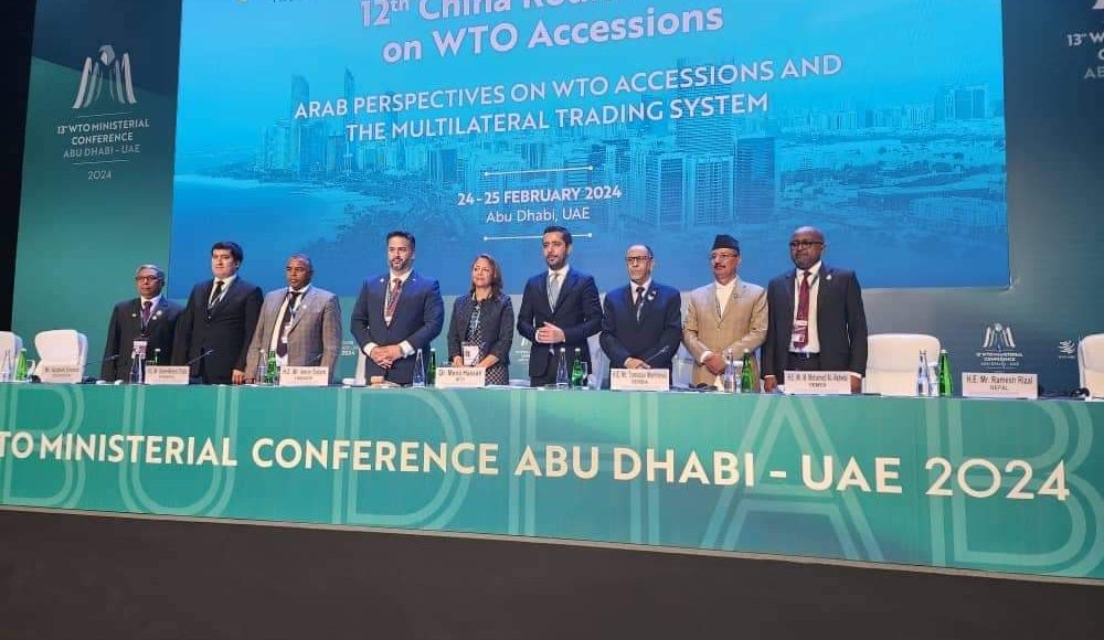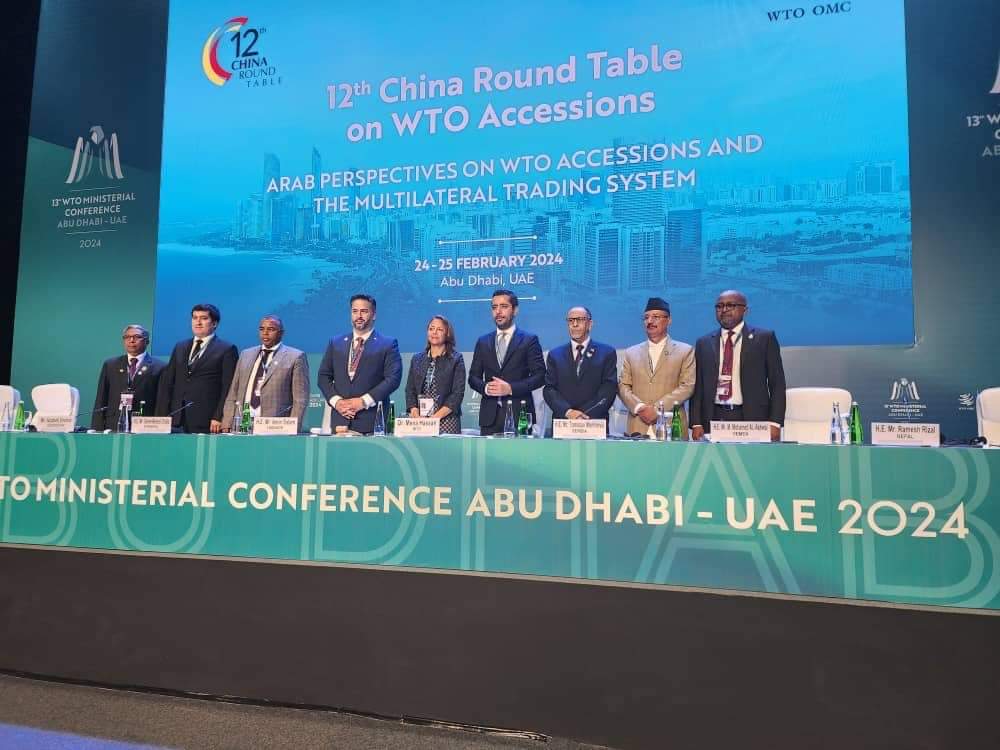 شارك وفد رفيع المستوى برئاسة غبرمسقل تشالا، وزير التجارة والتكامل الإقليمي في إثيوبيا، اليوم الأحد، في اجتماع المائدة المستديرة الثانية عشرة للصين بشأن الانضمام إلى منظمة التجارة العالمية، والتي تأتي ضمن الاجتماعات التمهيدية للمؤتمر الوزاري الثالث عشر لمنظمة التجارة العالمية، التي تنطلق غدا في العاصمة الإماراتية أبوظبي.
