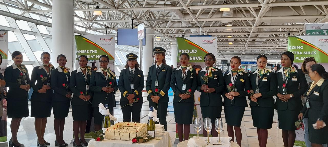 أطلقت الخطوط الجوية الإثيوبية، اليوم الأربعاء، رحلة في إفريقيا مكونة من طاقم نسائي بالكامل، بمناسبة اليوم العالمي للمرأة.
