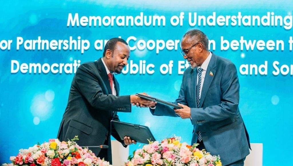 وقع رئيس الوزراء الإثيوبي أبي أحمد، ورئيس أرض الصومال موسى بيحي عبدي، اليوم الإثنين، على مذكرة تفاهم “تاريخية” في أديس أبابا، تمهد الطريق لتأمين وصول إثيوبيا إلى منفذ بحري.