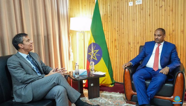 بحث وزير الدولة للشؤون الخارجية الإثيوبي السفير مسغانو، مع سفير البرازيل لدى إثيوبيا، جانديري فيريرا دوس سانتوس، تعزيز العلاقات الثنائية بين البلدين.