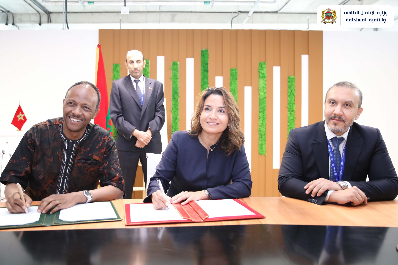 ووقع على الإتفاقية وزير المياة والطاقة هبتامو إتيفا، ووزيرة الانتقال الطاقي والتنمية المستدامة ليلى بنعلي، والمدير العام المنتدب للوكالة المغربية للطاقة المستدامة (مازن) طارق حمان.