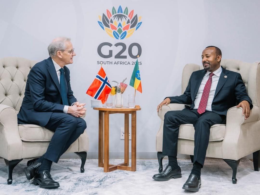 عقد رئيس الوزراء الدكتور آبي أحمد اجتماعًا مع رئيس الوزراء النرويجي يوناس غار ستور على هامش قمة قادة مجموعة العشرين 2025 في جوهانسبرغ، جنوب أفريقيا.