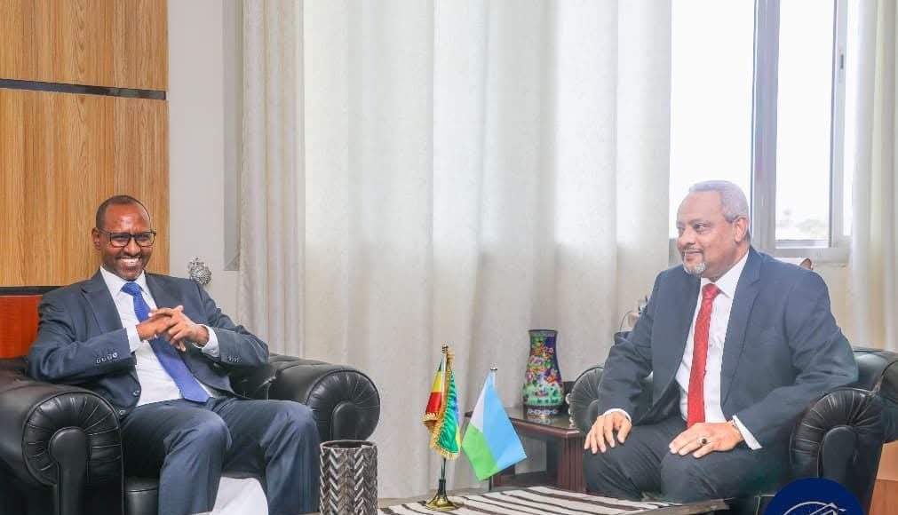 جاء ذلك خلال مناقشات أجراها وفد إثيوبي رفيع المستوى، برئاسة رئيس مركز تنسيق بناء الديمقراطية ونائب رئيس حزب الازدهار، آدم فرح، مع وزير الخارجية والتعاون الدولي الجيبوتي، عبد القادر حسين.