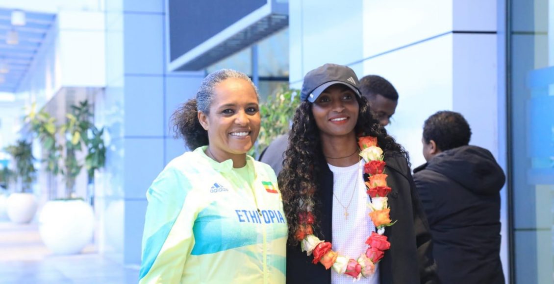 وكان في استقبالها لدى وصولها مطار بولي الدولي، رئيسة الاتحاد الإثيوبي لألعاب القوى، درارتو تولو، ووزير الدولة بوزارة الثقافة والرياضة، السفير مسفن تشرنت.