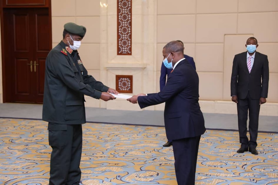 تسلم رئيس مجلس السيادة الإنتقالي الفريق أول ركن عبدالفتاح البرهان اليوم بالقصر الجمهوري أوراق إعتماد سفير فوق العادة والمفوض لجمهورية إثيوبيا السفير يبلتال أعمرو والذي قدم أوراق إعتماده سفيرا لبلاده لدي الخرطوم.
