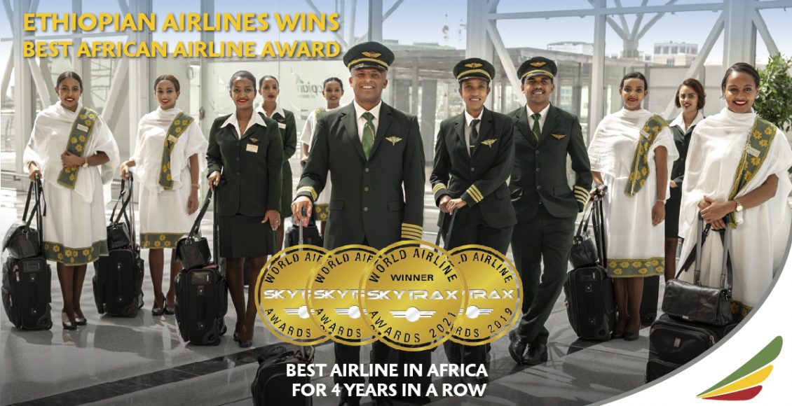 فازت الخطوط الجوية الإثيوبية مرة أخرى بجائزة أفضل شركة طيران أفريقية لعام2021  .