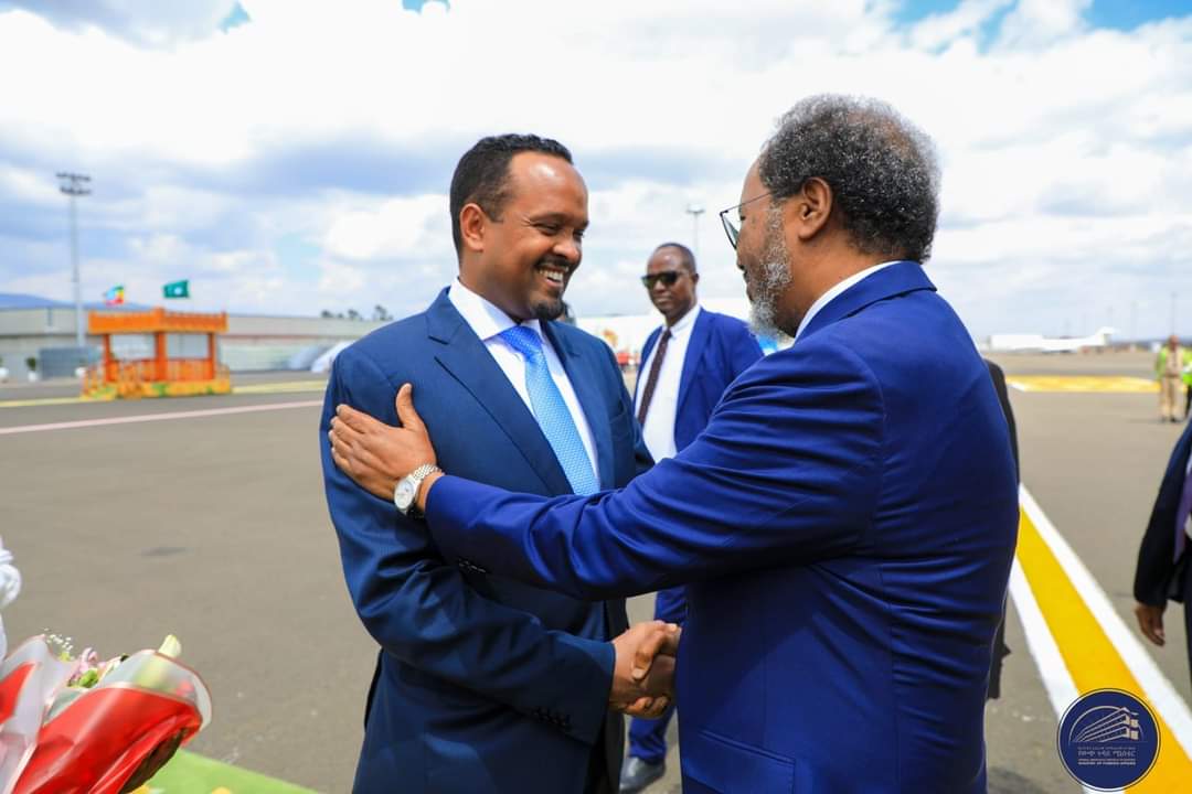وكان في استقبال الرئيس الصومالي لدى وصوله مطار بولي الدولي، وزير المالية الإثيوبي، السيد أحمد شيدي.