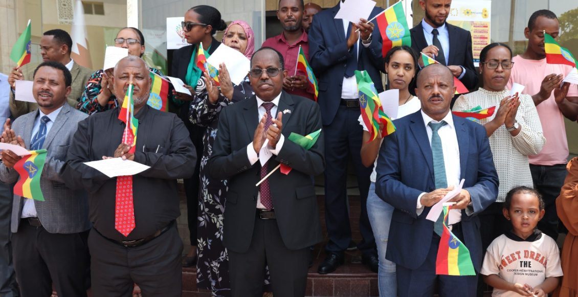 وتعهد أعضاء السفارة الإثيوبية بتقديم التضحيات اللازمة لحماية المصالح الوطنية لإثيوبيا من خلال العمل الدبلوماسي.
