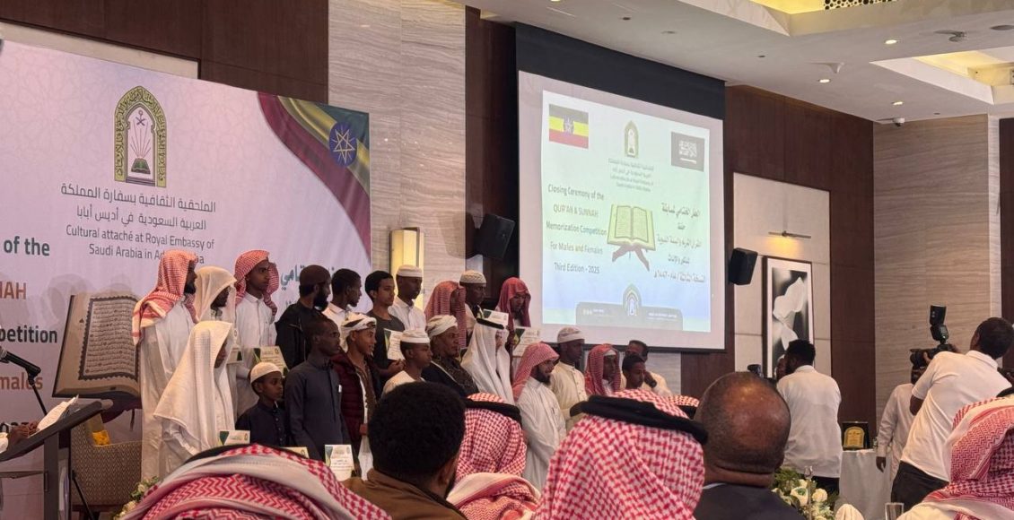 أقامت الملحقية الثقافية بسفارة المملكة العربية السعودية في إثيوبيا، اليوم الاثنين، في العاصمة أديس أبابا، الحفل الختامي لمسابقة حفظ القرآن الكريم والسنة النبوية، في نسختها الثالثة لعام 2025م (1447هـ)، بمشاركة واسعة من الذكور والإناث.