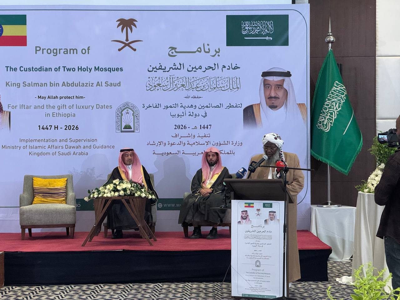 وشهد حفل التدشين سفير المملكة لدى إثيوبيا عبدالله بن حسن الزهراني، ورئيس المجلس الأعلى للشؤون الإسلامية الفيدرالي في إثيوبيا حجي إبراهيم توفا، والملحق الثقافي سعود بن مطيلق الغويري، إلى جانب عدد من السفراء والدبلوماسيين المعتمدين.