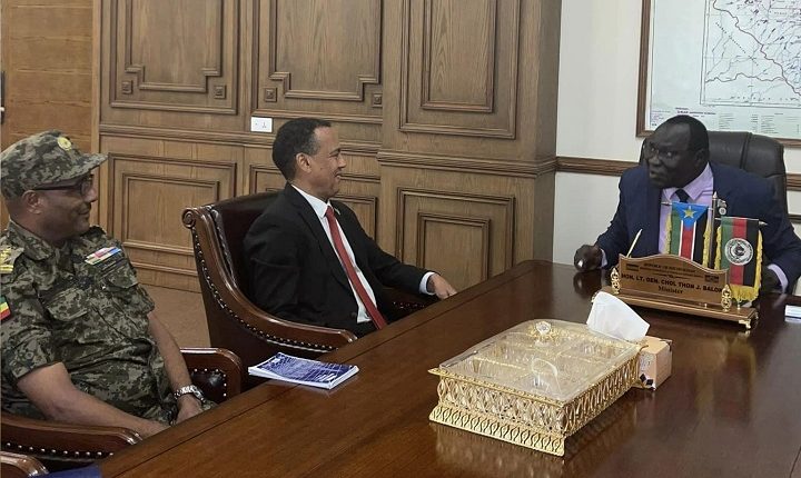 السفير الإثيوبي يلتقي مع وزير دفاع جنوب السودان On أكتوبر 6, 2023 539 فانا – أديس أبابا 6 أكتوبر 2023 عقد سفير إثيوبيا لدى جنوب السودان، نبيل مهدي، اجتماعاً مع الفريق تشول ثون جيه بالوك، وزير الدفاع وشؤون المحاربين القدامى في جمهورية جنوب السودان. وتم خلال اللقاء تبادل وجهات النظر حول سبل تعزيز التعاون في مجال بناء القدرات وتعزيز برامج تبادل الخبرات بين البلدين. وبحسب السفارة الإثيوبية في جوبا، أطلع السفير الوزير على الوضع الراهن في إثيوبيا. أعرب وزير دفاع جنوب السودان عن تقديره واعترافه بالدعم التاريخي الذي تقدمه إثيوبيا لجمهورية جنوب السودان في الأوقات الصعبة. 539 Share FacebookTwitterTelegramWhatsAppEmailViberPrint