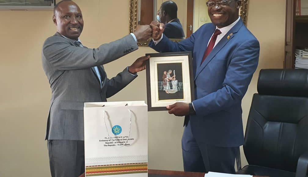 قام السفير السفير فوق العادة والمفوض لإثيوبيا لدى جمهورية زيمبابوي راشد محمد بزيارة إلى القائم بأعمال وزير الخارجية والتجارة الدولية في زيمبابوي ، البروفيسور آمون مرويرة ،في العاصمة هراري.
