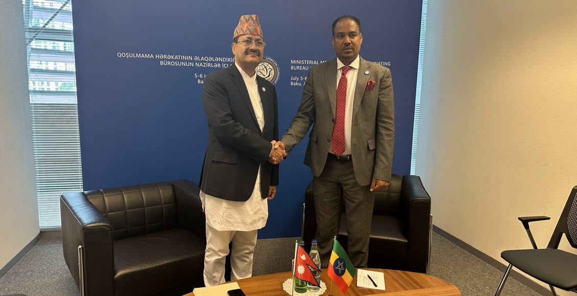التقى وزير الدولة للشؤون الخارجية الإثيوبي، السفير مسغانو أرغا، اليوم الأربعاء، وزير الشؤون الخارجية في جمهورية نيبال الدكتور نارايان خادكا، على هامش الاجتماع الوزاري لحركة دول عدم الانحياز الذي يعقد في باكو بأذربيجان يومي 5 و6 يوليو الجاري.