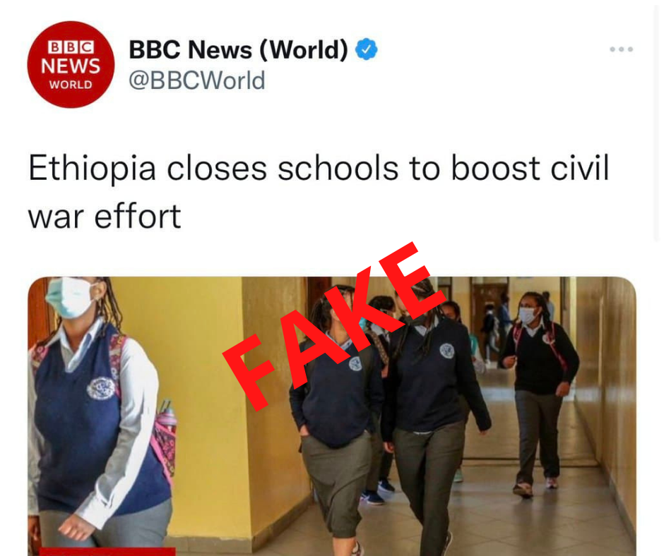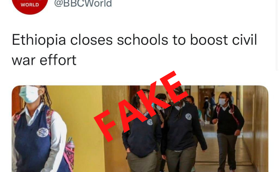 دحضت السكرتارية الصحفية لمكتب رئيس الوزراء بيليني سيوم ، الأخبار الكاذبة التي أطلقتها بي بي سي مؤخرًا تحت عنوان تضليل المجتمع الدولي بعنوان “إثيوبيا تغلق المدارس لتعزيز جهود الحرب الأهلية”.