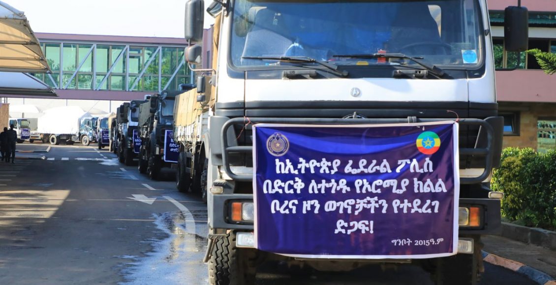 وذكرت الشرطة في بيان لها، أن الدعم سيُستخدم للمواطنين المتضررين من الجفاف في منطقة بورينا بإقليم أوروميا ومنطقة كونسو في إقليم جنوب إثيوبيا وإقليم الصومال.