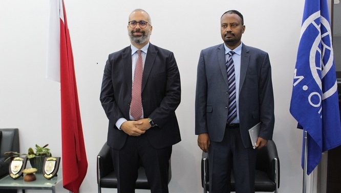 التقى القنصل العام لجمهورية إثيوبيا الفيدرالية الديمقراطية لدى مملكة البحرين، شفراو جنتي، اليوم برئيس بعثة المنظمة الدولية للهجرة في مملكة البحرين، محمد الزرقاني .