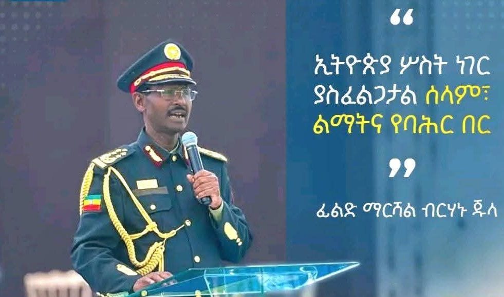 واعتبر المشير برهانو أن تعزيز قدرات الجيش الوطني هو الضمان الحقيقي لحماية السيادة والمصالح الاستراتيجية لإثيوبيا، مؤكدًا أن البلاد ستواصل العمل لتأمين نهضتها الاقتصادية والحفاظ على أمنها واستقرارها.