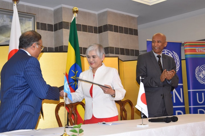 ووقع الاتفاقية سفيرة اليابان لدى إثيوبيا إيتو تاكاكو والممثل المقيم لبرنامج الأمم المتحدة الإنمائي توهان صالح، وبحضور رئيس لجنة الحوار الوطني الإثيوبية، مسفن أريا.
