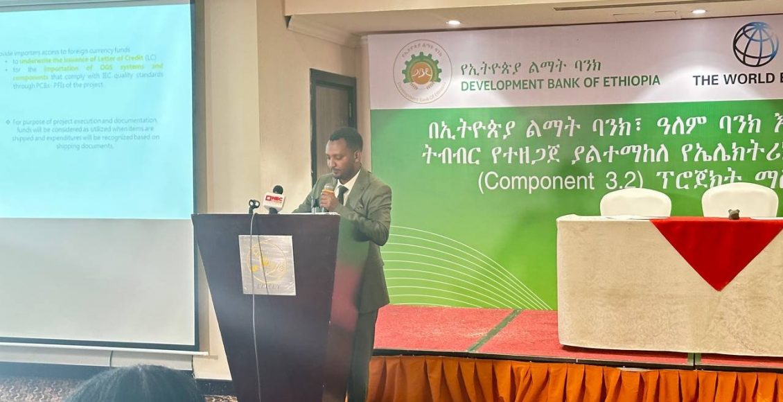 وأثناء ورشة عمل رفع الوعي التي عقدت اليوم، أكد مدير فريق تصميم المشروع وتقييمه في بنك التنمية الإثيوبي، منغستو دسالن، أن التمويل سيُستخدم لتسهيل استيراد وتوزيع ونشر أنظمة الطاقة الشمسية خارج الشبكة ومعدات الاستخدام الإنتاجي في المناطق الريفية.