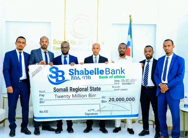 قدم بنك شبلي ” “Shebele bank” دعمًا بقيمة 20 مليون بر للمتضررين من الحريق الضخم الذي اندلع الأسبوع المنصرم، في مدينة “جيغجيغا” بإقليم الصومال.