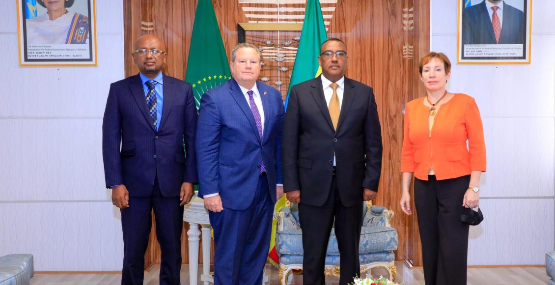 التقى نائب رئيس مجلس الوزراء ووزير الخارجية الإثيوبي السيد دمقى مكونن في مكتبه اليوم ، المبعوث الخاص للولايات المتحدة للقرن الافريقي المعين حديثًا مايك هامر.