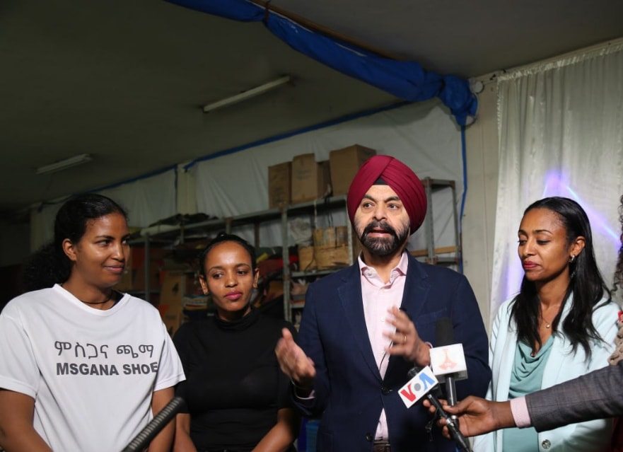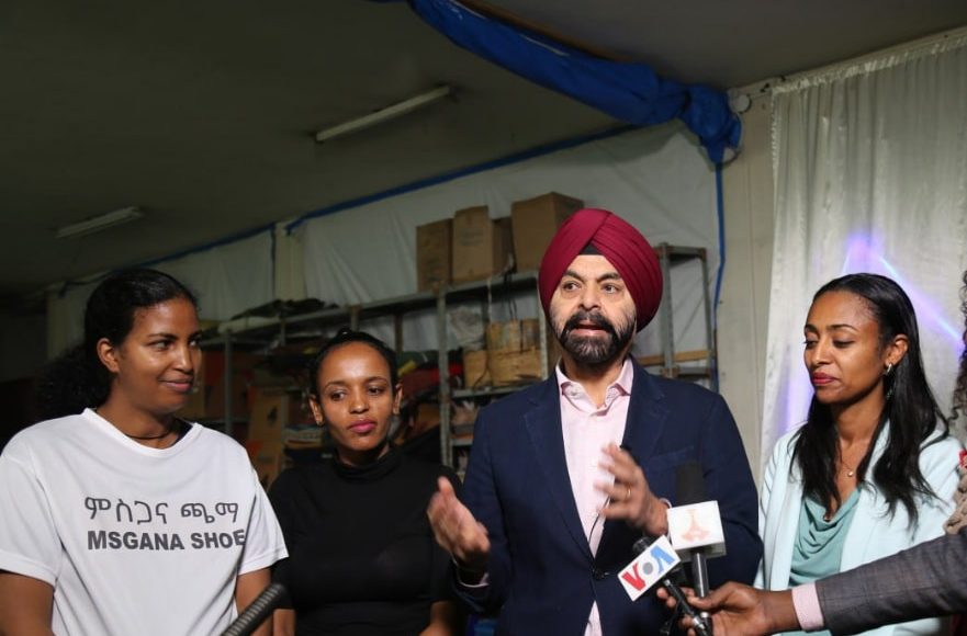 قام رئيس البنك الدولي، أجاي بانجا، في يومه الثاني من إقامته الرسمية بإثيوبيا، بزيارة رائدات الأعمال المنخرطين في المشاريع الصغيرة والمتوسطة.