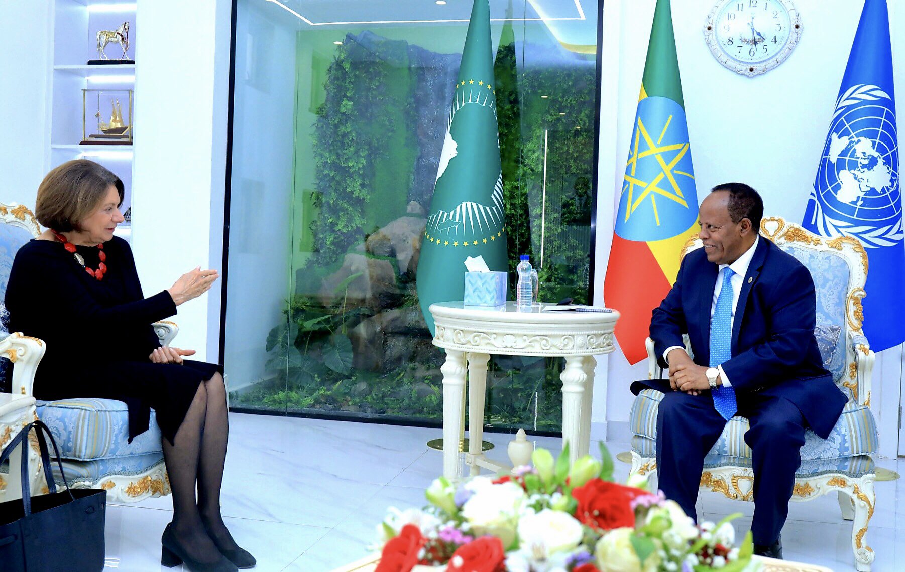 استقبل الرئيس الإثيوبي تايي أتسقى سيلاسي، اليوم الجمعة، وكيلة الأمين العام للأمم المتحدة للشؤون السياسية وبناء السلام روزماري ديكارلو، ويبحثان قضايا السلام والأمن في منطقة القرن الأفريقي، خاصة في الصومال.