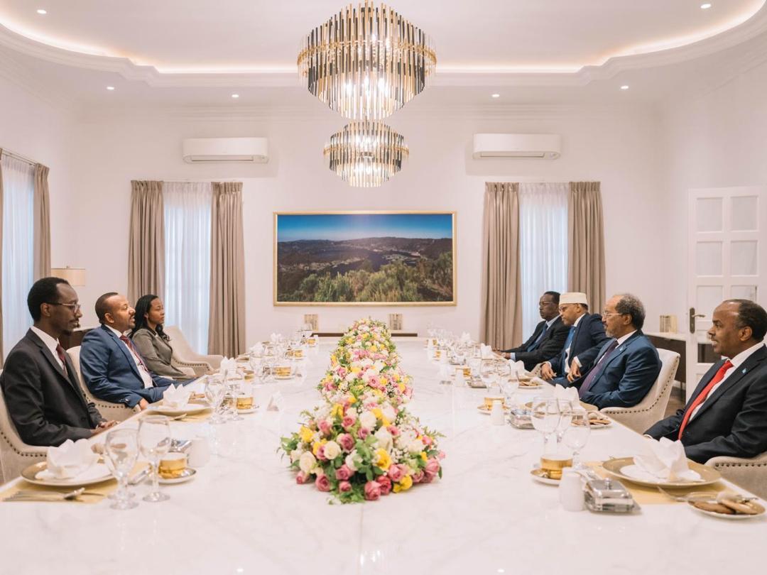 أجرى رئيس الوزراء الإثيوبي الدكتور آبي أحمد محادثات مع رئيس جمهورية الصومال الفيدرالية، حسن شيخ محمود، خلال زيارة عمل استغرقت يومًا واحدًا.