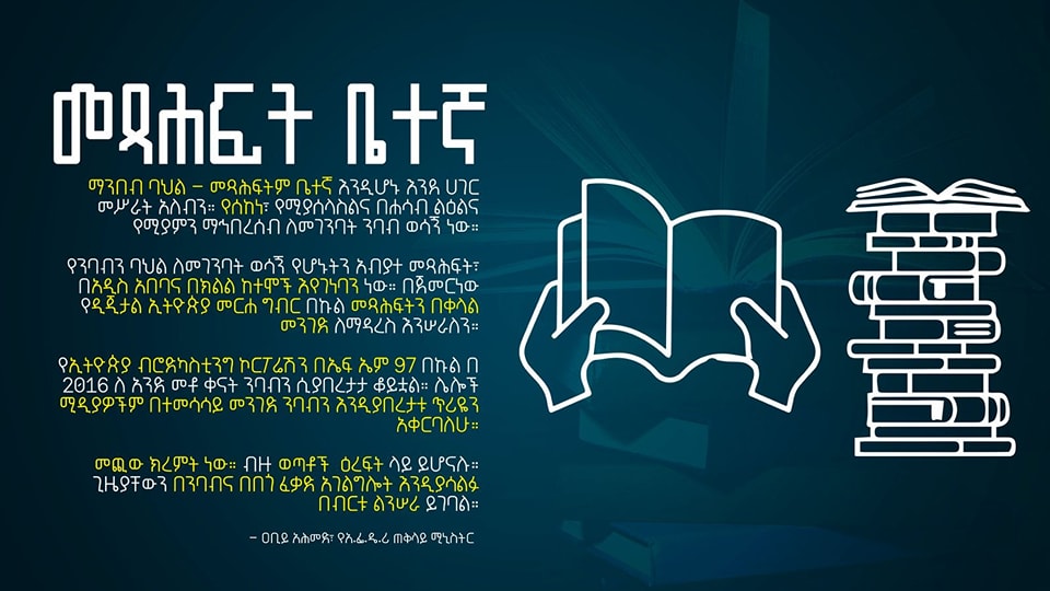وأشاد رئيس الوزراء بجهود هيئة الإذاعة الإثيوبية (EBC) في تشجيع القراءة عبر برنامجها “القراءة لمدة مائة يوم”، ودعا وسائل الإعلام الأخرى إلى إطلاق برامج مماثلة لتعزيز ثقافة القراءة في جميع أنحاء البلاد.